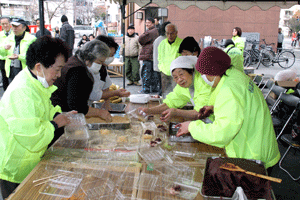 【代理出席秘書報告】 朝早くから神社に約50人の浅間神社世話人の方が集まって、節分用のお餅を作ってらっしゃいました。合計100s、約2500個のお餅をお作りになられるそうです。