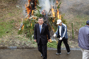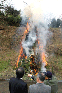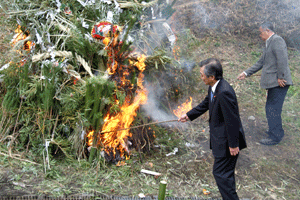 【代理出席秘書報告】正法院の友繁照純住職により赤井不動尊初不動大護摩供ご嵬開扉法要が正法院本堂で行われました。例年正法院で行われます大護摩法要はいつも大変な人出で賑わいます。特に今年は人出が多く300人を越す祈祷参拝者となりました。友繁ご住職は、「正法院の大護摩法要に大勢ご参拝頂き有り難うございます。大根をお加持してプレゼントします。食すれば無病息災になりますよ。また本堂裏山に赤井不動尊をお祀りしてあるので、こ石(福石)を持ち帰りお不動さまの身代わりとしてご祈念し、願いがかなったらお返し頂く事が昔から言い伝えられている事です。遠慮なくこ石(福石)をお持ち帰りになって下さい」と、皆さんに話されていました。