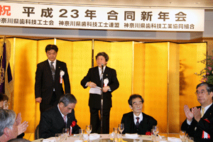 【代理出席秘書報告】山口寿則支部長からは、「支部長になって3回目の新年会。今夜は是非ともゆったりとされ、明日の鋭気を養って下さい」とのご挨拶があり、また、加藤昇一神奈川県薬剤師会長からは、「協励会の先生方には、調剤のみならず、患者さんに対して、受診勧告や薬を売らないということも薬局としてお考え頂けれはと思います。また、皆様と日本薬剤師会や行政との間にたって橋渡しの役割を果たしていきたいと思います」 とのご挨拶がありました。