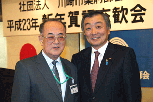 【代理出席秘書報告】神奈川県家電業会新春賀詞交歓会に代理出席。家電業会を代表し神奈川県電機商業組合の高橋勇理事長から挨拶がありました。「アメリカのリーマンショックを発端とする世界同時不況が引きずる中、家電業会は希に見る順風満帆だったがエコポイントが半減し、消費者のシビアな消費行動により売上は低下した。しかし太陽光発電、オール電化等の戦略で今年も元気に頑張りたい。」と抱負を述べられました。