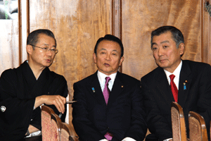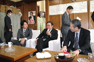 役所の皆さんやマスコミ関係者との懇談会が会館事務所で開かれ、今後の政治の動きや政策について意見交換が行われました。麻生太郎先生は今、ワシントンあたりにいるようです。