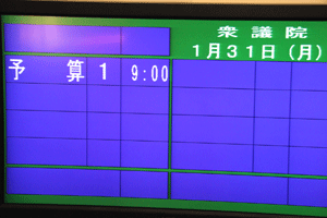 今日の国会日程は、衆議院の予算委員会が予算委員長の職権により午前9時からセットされていますが、強引な予算委員会日程のため野党は対応していません。国対メンバーは与党民主党国対や予算委の回答を待っています。