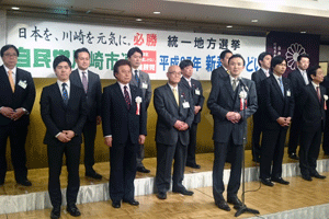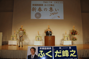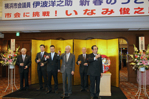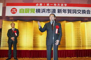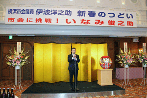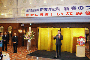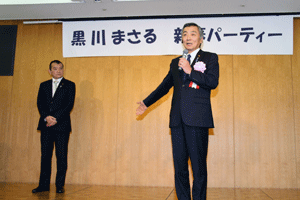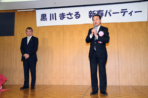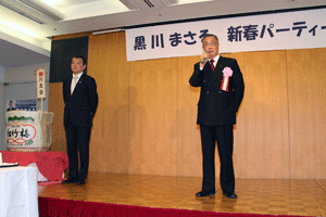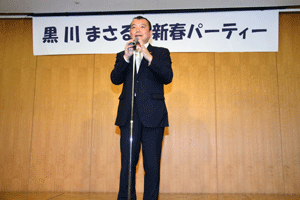「横浜市会議員・黒川まさる新春パーティー」が横浜テクノタワーホテル内「ファミール」で開催されました。実行委員会・安斎嘉修代表より来場者に謝辞が述べられ、 新春パーティーは4月に行われる統一地方選挙に向けた決起大会に切り替えられました。来賓挨拶では国吉一夫県議から祝辞が述べられた後、私から地域や政党に必要な人材である旨をお伝えし、統一地方選挙での黒川市議の必勝を祈念申し上げました。黒川市議は、市会議員初当選からの議員活動を報告され、市会議員選挙3期目に挑む決意が述べられました。