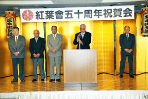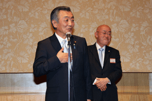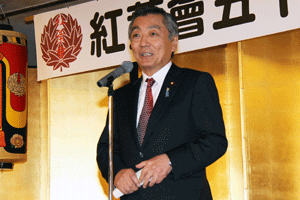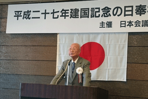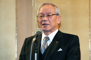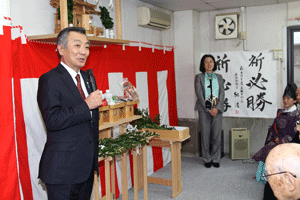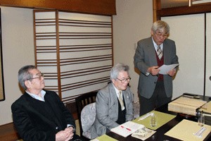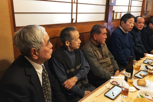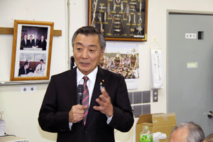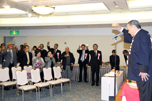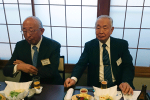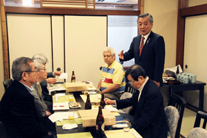 神奈川県郷友会新春親睦の集い祝賀式と親睦会が旅館まつしまで開催されました。祝賀式で国家斉唱を行った後、金子由成会長より「お陰さまで26年度事業は全て無事終了することができました。昨今の国際情勢は非常に不安定な状況でありますが、その中で神奈川県郷友会としての役割は多くあると思います。新しい年を迎え目標に基づいて邁進していきたいと思いますのでよろしくお願いいたします」との挨拶がなされました。山田榮氏の乾杯の音頭で懇親会に入りました。(秘書古正報告)