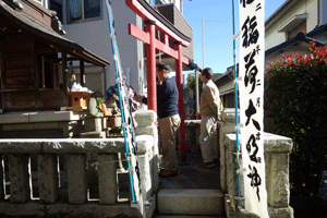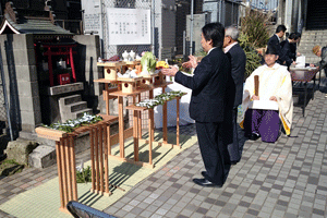 中原正一位稲荷の初午祭に参加しました。役員の皆さんがお稲荷様にお参りし、その後町内会館で直会が行われました。講元代表の関幸一さんより「今日は大勢のみなさんのご参加ありがとうございました。この町内会館も4月の中旬には明け渡さなくてはならないので、稲荷講もこの町内会館では最後になります。また私も17年間講元を勤めて参りましたが、来年からは斎藤さんに引き受けていただく事にいたしました。今日はこの会館で最後 までゆっくりして下さい」との挨拶がありました。続いて宮司のご挨拶の後、私も松本純代理として紹介していただきました。(秘書斎藤報告)