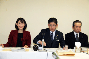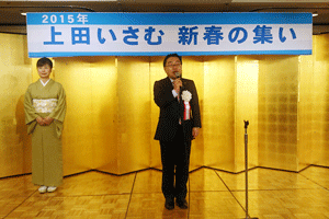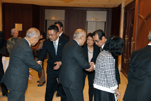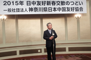 神奈川県日本中国友好協会2015年新春交歓の集いの懇親会に来賓としてお招きいただきました。開会にあたり牧内良平会長より「今日は来賓の皆様はじめ多くの参加をいただきありがとうございます。私が会長に就任し3年になりますが、このお正月は初めて明るい希望が持てるお正月を迎えられました。と、言うのは昨年北京てAPECが開催され、日中首脳会談が行われ明るい兆しが見えた事です。必ずしも青空と言うものではありませんが、APEC前後で交わされた4つの原則で交渉が始まりました。今年は戦後70年になり、安倍首相の談話が気になりますが、一国の首相ですから日中関係を壊す事はないと思います。日本の平和・民主主義・言論の自由は何にも代えがたい宝であります。中国に理解を求めてもらう努力をして行く必要があります。お互いの国のアラを探すのではなく、良いところを見つけていきましょう」との挨拶がありました。続いて来賓のご挨拶があり、乾杯後に私も松本純代理として紹介していただきました。(秘書斎藤報告)