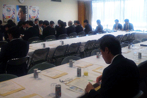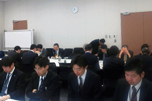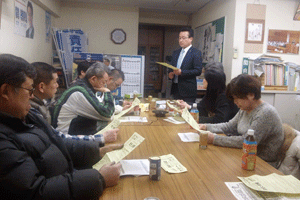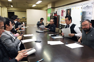 吉田町町内会・名店街会役員会・市況研究会が吉田町町内会館で開かれました。今井大町内会長から@統一地方選挙の日時について、A振り込めサギについて、B覚せい剤などの運び屋について 、C2015ヨコハママラソンについて、D赤い羽根募金について、の報告がなされました。名店街会荒井浩会長より、@吉田町に「リリイ」という吉本の横浜在住の若手芸人のライブシアターが新しく出来たことと芸人紹介について 、A福富町餅つき大会参加について、以上二点の報告がなされました。(秘書古正報告)