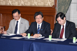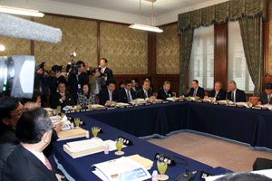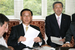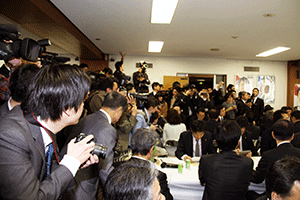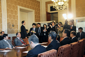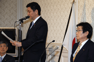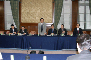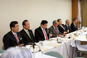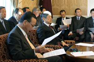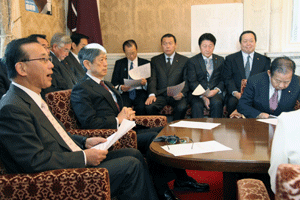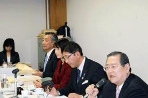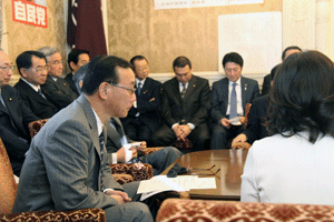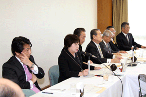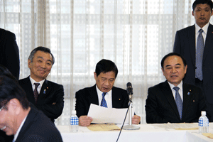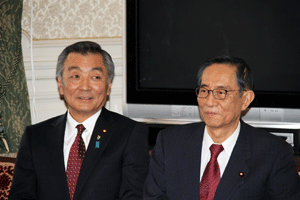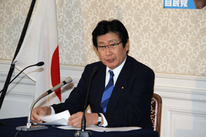私(谷垣幹事長)からは、高村副総裁がおっしゃったとおりだが、この議論をするときは法律の規定をよく踏まえて議論しなければいけないということを申し上げました。今さら申し上げるまでもありませんが、政治資金規正法第22条の3というところの問題なわけでございます。補助金をもらっているところから政治献金を受けてはいけないという大きな構造の中で、法律には「試験研究、調査又は災害復旧に係るものその他性質上利益を伴わないもの」は除くと書いてあり、そういう補助金等を受けているところから受け取ることは差し支えないという書きぶりになっているわけです。それから、例えば国から直接交付決定を受けていないもの、例えば一般社団法人が交付決定しているものは全く問題ないという規定ぶりになっております。ですから、まずこの法律に照らして判断をしていくということが必要ではないか。私どもは、今取り上げられている問題はこの法律に照らして全く問題ないという判断でいるわけでございます。