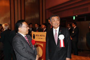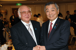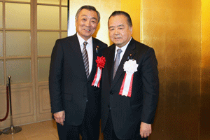 日頃お世話になっている漆原良夫代議士の励ます会が盛大に開催され、お祝いに飛んでいきました。