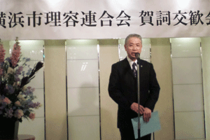 横浜市理容連合会賀詞交換会が横浜国際ホテルで開催されました。新年会は3年に1度の開催で、横浜市理容連合会・三橋康利会長より「まずもって感謝を申し上げたいと思います。去年10月1日より洗髪設備条例が施行されました。大変有り難く思っております。自助、共助、公助とよく言われますが、我々自身が自助努力をしませんと折角の条例が生きて来ません。是非とも皆さん頑張っていただきたいと思いますとご挨拶されました。三橋会長挨拶後は来賓祝辞がなされ、横浜市各区の自民党市会議員の紹介挨拶が行われました。私も代議士代理としてご紹介をいただき新年のご挨拶をいたしました。乾杯の発声後は、連合会各支部の親睦が図られました。(秘書森報告)