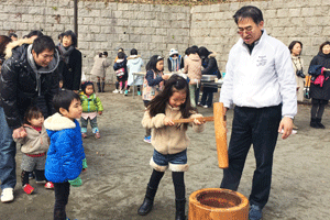 新春八若もちつき大会が本牧元町南部町内会館で開催されました。私が会館入りする手前からお囃子が町内に響いており、会場に着いた時には既に餅つき大会に参加している気分でした。敷地内は町内の方で賑わっており、私もお餅をつかせていただきました。その後、美味しいつきたてのお餅をいただきました。(秘書岩村報告)