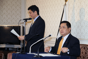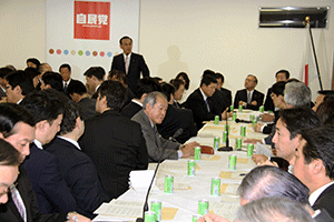 稲田政調会長からは、郵便事業に関する特命委員会を設置する。これは、日本郵政が上場するということに伴っていろいろな問題を検討したいということです。また、農協改革のビラを作成したというご報告がありました。