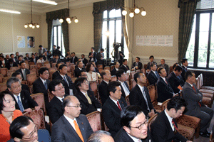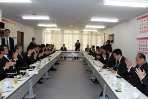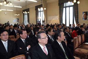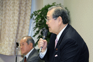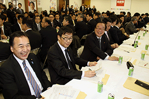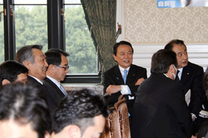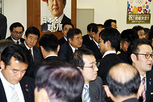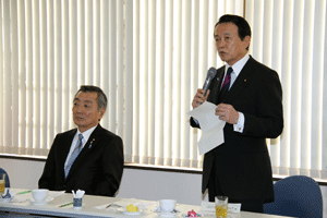 為公会例会 麻生太郎会長挨拶 ご存知のように、今週月曜、西川(公也)農水大臣が辞任、その後を受けて、林芳正参議院議員が農水大臣に就任した。 今まさに、経済再生に向け(た政策実行の為)、新年度予算案の審議が衆議院で行われているが、ここは一致団結して一日も早く成立させなければならない。きのうの各派会長会合でも同様の話でまとまっている。 また、それこそが過日の総選挙で有権者が示した期待でもあろうかと思うので、きちんとまとめていかねばならない。 もちろん「政治とカネ」については、各々の議員が常に襟を正し、きちんとしておかねばならない最も大事なところだ。 しかし、だからと言って、経済政策の遂行を遅滞させることはできない。立法府に身を置く者として、年度内成立を目指して全員で力を合わせて参りたい、左様に考えている。 景気に関する有権者の意識も変わってきていると思う。この前も、高野(光二郎)参議院議員の会合で高知に行ったが、有効求人倍率等もかなり改善してきているとのことだった。もちろん「まだまだ地方には(景気回復の波が)行き届いていない」との話も聞く。皆さんはいつも地元を歩いていると思うので、いろんな話、情報を聞かせてほしい。 |