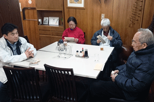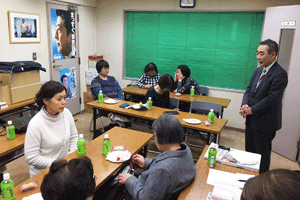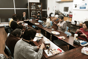 野毛2丁目野栄クラブの金曜サロンが野毛の「喫茶カミン」で開催されました。今年初めての金曜サロンは永持嬌子会長の挨拶で和やかに始まり、松本研市議代理で幸代夫人からも挨拶がありました。私も紹介を受けました。その後、永持嬌子会長から来月は12月〜3月生まれの方のお誕生日のお祝いをすることと開会時間を13時〜にしようと定案があり、参加された皆さんに同意されました。(秘書岩村報告)