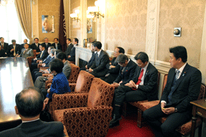 また、補正予算は今参議院で審議をいただいているがよろしくお願いする。その後は、平成27年度予算の年度内成立ということで頑張ろうということを申し上げたところです。