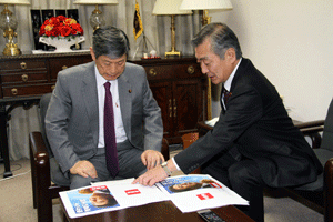 佐藤国対委員長からは、予算委員会の日程、そして財務金融委員会や総務委員会の審議も急ぎたい。それから、報道されている二大臣の問題、補助金の問題は、幹事長が説明したとおり全く問題がないと考えているというお話がありました。
