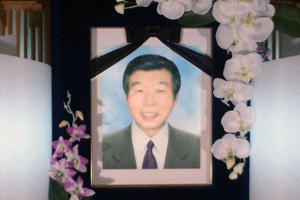 ▽永年在職議員として表彰された元議員阿部昭吾君逝去につき弔詞贈呈報告