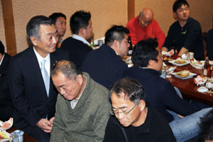 山手地区商店街連合会新年会が山下町のメルパルク横浜7F「レインボー」で開催されました。会長の佐久間遵一様より新年のご挨拶と共に「大きなイベント『黄色いハンカチ商店街』と言う大それた事をしでかしました。皆様には大変なご苦労をお掛けした事をお詫び申し上げます。口では誰でもやれる事はやれていますが、行動力のある実直な方で各商店街それぞれの方向性も弁えながら、色々な形で応援して頂き頭が下がる思いです。お陰様でイベントが出来たと言う事実はございますが、実際には庶務事項が沢山残っておりますので、またご苦労を掛けるかと思います。そこで皆様に申し上げたかったのは、お客様の気持ち、お店の気持ち等色々な事をこのイベントによって得られたと思います。色んな形を踏まえ、もう一度山手商店街連合会を、お年寄り或いはご婦人、小さいお子さんにも振り返って貰おうと言うのが大きな趣旨でありました。最後に中小企業診断士新谷司聖様との出会いにより、一つ一つご指導頂いて今日がございます」とご挨拶があり、新谷司聖様をご紹介されました。続いて来賓の方々のご挨拶があり、私も松本純の代理で紹介を受けました。乾杯の発声後は、美味しい料理をいただきながらの和やかな新年会でした。(秘書岩村報告)