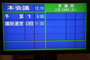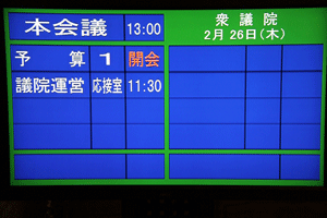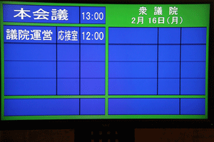 ●1245〜代議士会/院内第14控室→●1300〜衆院本会議/本会議場