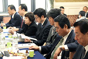外交・経済連携本部・TPP対策委員会及びTPP交渉における国益を守り抜く会合同会議が自民党本部901号室で開催されました。吉川貴盛TPP対策委員会事務総長からの開会の挨拶の後、衛藤征士郎外交・経済連携本部長、森山裕TPP対策委員長、TPP交渉における国益を守り抜く会江藤拓会長の挨拶があり、TPP交渉の状況について内閣官房TPP対策本部澁谷和久内閣審議官から、直近の1月26日から2月1日まで開催されたニューヨークでの首席交渉官会合での状況等についての説明聴取に引き続き、質疑応答、意見交換に移りました。党の決議並びに国会決議を守るべきとの意見が多く表明されました。(秘書渡部報告)