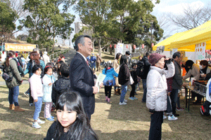 中区第2地区連合町内会餅つき大会が新山下2丁目ベイサイド公園で行われました。公園内にテーブルと椅子が用意されていて、青空の下開放感一杯の餅つき大会は盛況でした。お餅をつかせていただいた後、ベイサイド新山下自治会館の2階に上がらせてもらいました。松澤秀夫会長を中心に各町内会の会長、役員、来賓の方々が和やかに会食している所に参加させていただき、私も辛味餅とお味噌汁をいただきました。(秘書岩村報告)