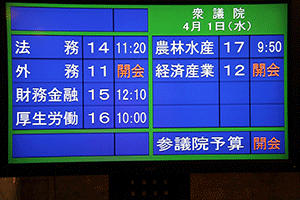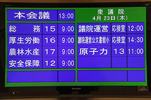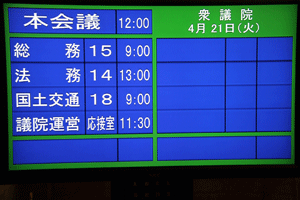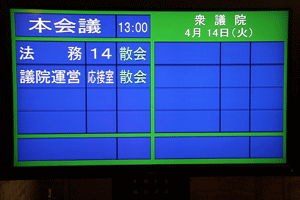 ●1245〜代議士会/院内第14控室→●1300〜本会議/本会議場