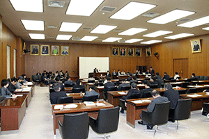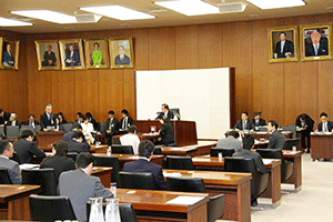 自民党神奈川県連の総務会が県連会議室で開催されました。桐生秀昭総務会長代理から「総務会構成員20名、本日出席者12名、委任状6名の合計18名で本日の総務会は成立いたしました」との資格審査報告がなされました。竹内英明幹事長の挨拶に続き、国吉一夫総務会長より本日の議題の報告事項1.統一地方選、県議会選挙当選者の党県議団入団申請について報告がなされました。(秘書古正報告)