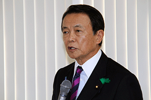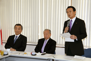 二週欠席された麻生太郎会長が久々に登場され、下記の通りご挨拶を述べました。