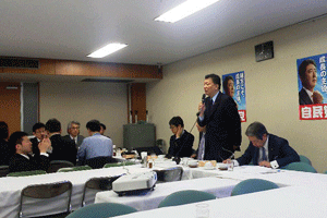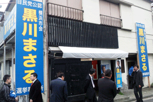 自民党横浜市会・黒川まさる候補の個人演説会が柴町内会館で開催されました。黒川まさる後援会・安斎嘉修会長のご挨拶後、地元弁士の方から黒川候補の地域に対する貢献が述べられ、松本純代議士からは黒川候補へ選挙戦必勝の激励が述べられました。(秘書森報告)