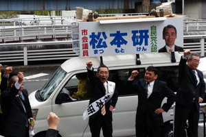 松本研横浜市会議員選挙候補者の出陣式が松本研事務所で執り行われました。神事での祝詞奏上、玉串奉奠に続き、松本研候補より力強い決意表明がなされ、勝つぞコールで宣伝車に乗り街頭遊説に向かいました。(秘書古正報告)
