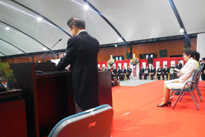 学校法人都築第一学園横浜薬科大学平成27年度10期生入学式が、横浜薬科大学体育館で次の次第にのっとり挙行されました。開式のことばの後、国歌斉唱、江崎玲於奈学長から403名の新入生に対して入学許可が宣せられ、江崎玲於奈学長からの告辞、都築仁子学園総長からの式辞が述べられ、来賓祝辞が、藤井基之文部科学副大臣、中村勝日本保険薬局会長、高尾良洋神奈川県病院薬剤師会長から代表して述べられ、祝電・祝詞の披露があり、入学生代表宣誓、在学生代表歓迎のことば、閉式のことばで閉会となりました。地元選出薬剤師衆議院議員としてご案内を頂きましたが、秘書渡部が代理で出席させて頂きました。代理紹介並びに祝電の披露がありました。また、来賓として、小杉隆元文部大臣、神奈川県薬剤師会加藤昇一会長、横浜市薬剤師会向井秀人会長、戸塚区薬剤師会湯川仁会長、日本配置販売協会右近保会長、横浜市柏崎誠副市長、田雑由紀乃戸塚区長等多くの来賓、父兄関係者の皆様の参加により盛大な入学式となりました。(秘書渡部報告)