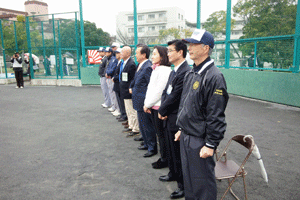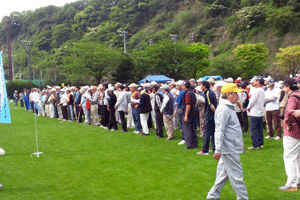 金沢シーサイドタウン連合つつじ祭り・グランドゴルフ大会開会式が長浜運動公園で開催されました。金沢シーサイドタウン連合自治会・増田一行会長より「晴天に恵まれ大勢の皆さんにご参加いただきました。安全に注意して、今日1日楽しんでください」と開会ご挨拶をされ、来賓挨拶では4月1日に金沢区新区長に就任された國原章弘区長より激励のご挨拶がなされました。また金沢区選出の県市議と共に、松本純代議士代理としてご紹介をいただきました。開会式後は参加者全員での体操が行われ、300人を超す各自治会参加者によるグランドゴルフが開始となりました。(秘書森報告)