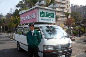 統一地方選挙が本日告示となり確団車遊説を行いました。自民党横浜支部連合会確認団体車として選挙管理委員会から表示版を受け取り、本日から9日間の統一地方選挙を自民党県市会公認候補者を支援して回ります。 ウグイスは秘書平木、ドライバーは秘書森でした。本日は金沢区を遊説いたしました。(秘書森報告)