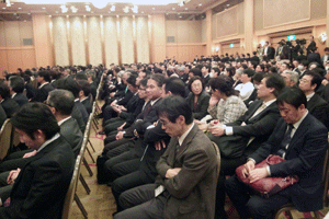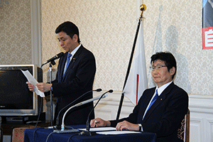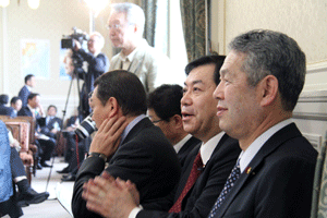 平成27年度横浜弁護士会新理事者就任披露懇親会がホテルニューグランド3Fペリー来航の間で開催されました。竹森裕子新会長より「平成27年度新会長を務めさせていただくことになりました。1年間どうぞよろしくお願いいたします。改めて弁護士と弁護士会を取り巻く状況がひしひしと身に迫ってきました。弁護士大量増員時代にあって、経済環境の厳しさは若手にとどまりません。しかしピンチをチャンスに変える好機と積極的にとらえる視点も必要だと思います。法の支配を社会の隅々に行き渡せるために弁護士がなしうる事は多々あります。弁護士の活動領域の拡充等に知恵を結集し成果が実る将来を目指したいと思います」との挨拶がなされました。(秘書古正報告)