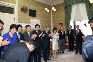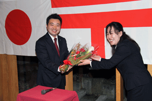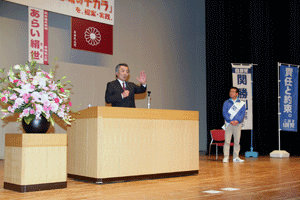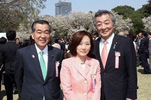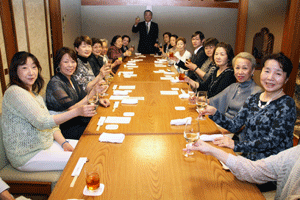 仲榮会40周年記念の会祝宴が大磯プリンスホテルで開催されました。仲榮会中丸榮子会主には松本純代議士が日本民謡歌謡舞踊協会で大変お世話になっています。祝儀曲「さんさ祝い歌」の披露に続き、中丸会主から「若き日に友人に誘われ何気なく始めた民謡が私の人生に大きな華を咲かせてくれました。40年を振り返ると、民謡ブームもあり、数々の舞台、レコーディングを通していろいろな勉強をさせていただきました。これからも仲良く楽しく和をもってをモットーに中榮会は前進して参りたいと思いますのでよろしくお願い申し上げます」との挨拶がなされました。(秘書古正報告)