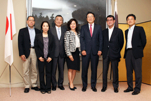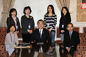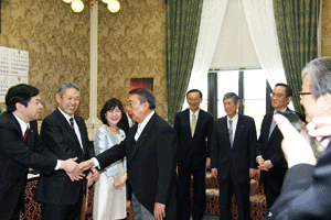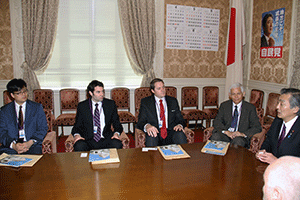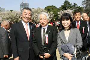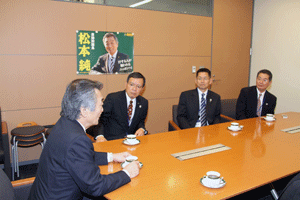 志田祥子様はじめ代議士の母校横浜市立本町小学校の4年生と2年生の各々2名を含むご一行様9名が国会見学にいらっしゃいました。衆議院内3階自由民主党総裁室で松本純代議士との懇談をして頂きました。昼食は、衆議院2階議員食堂でそれぞれに注文して頂きました。見学は、まず到着された衆議院第一議員会館の12階から国会の全景を見て頂き、ご案内を開始しました。国会見学のための特別通行証が3時間の限定のため慌ただしいご案内となりました。衆議院の中は3階の第一委員室(予算委員会等の開催される会議室)、御休所(天皇陛下が開会式におみえになられたとき等におやすみ頂くお部屋)、中央塔、2階第14控室(自民党代議士会等開催の部屋)、議長応接室、1階衆議院正面玄関内ホ−ル、国会議事堂正面での写真撮影、都道府県の木、お土産屋さんでのお土産購入、吉野屋さんでの牛重の購入、憲政記念館見学で持ち時間が終了してしまいました。その後は、千鳥ヶ淵までいき、九段会館から日本武道館周辺の満開の桜のお花見をして帰浜の予定とのことでした。(秘書渡部報告)