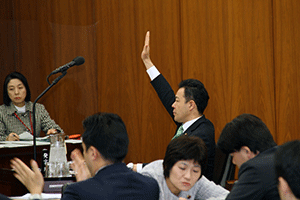 選挙制度調査会が、自民党本部702号室で開催され、福田峰之事務局長代行の司会で進行されました。逢沢一郎会長から憲法改正の国民投票の投票権年齢18歳になることに関連して、選挙権年齢の18歳への引き下げ法律案の成立が課題であり、また、投票環境の向上について論議をして頂きたいとの挨拶の後、議題の、@投票環境の向上方策等に関する研究会中間報告については、総務省選挙部長から、A選挙人名簿の登録制度の見直し案(公職選挙法改正案)については、衆議院法制局、総務省選挙部長からの説明聴取に、引き続き、質疑応答、意見交換にうつりました。なかで、新しい住所に引っ越して3カ月以内に選挙がある場合は旧住所で投票できるよう、選挙人名簿登録制度を見直す公職選挙法改正案をまとめ、野党にも共同提出を呼び掛け、今国会での成立を目指す内容の改正案を提出成立を目指すこととしました。自民、民主、公明など与野党6党は選挙権年齢を18歳以上に引き下げる公選法改正案を今国会に共同提出していて、来年夏の参院選から適用される見通しで、自公両党は選挙人登録制度の見直しも同時に実施したいとのこと。現行制度では、新住所に3カ月以上住んでいないと自治体の選挙人名簿に登録されない。18歳は進学や就職のため引っ越すケースも多く、新年度に転居する多くの若者が、来年夏の参院選で選挙権を行使できない可能性が指摘されていることから審議されました。(秘書渡部報告)