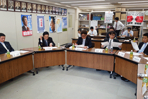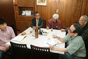 自民党中支部の事務局会議が伊波洋之助支部長事務所で開かれました。松本研市議、原聡祐県議、伊波俊之助市議が参加されました。本日の議題は1.自民党中区連合支部役員総会について、2.自民党中区連合支部党員総会についてでありました。(秘書古正報告)
