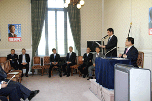 為公会例会 麻生太郎会長挨拶 国会日程の関係で2週間(当例会を)欠席した。 さて、きのうから新年度が始まった。しかし、残念ながら予算案は参議院で審議中だ。今週月曜日に暫定予算が成立したが、一刻も早く本予算が成立すべく努力を続けていかねばならない。先生方のご協力、ご尽力をお願い申し上げる。 また、その他の委員会でもそれぞれ案件を抱えていると思うので、対応をよろしくお願い申し上げる。 さて、いよいよあす(金)、41の道府会議員選挙の告示日となった。あすは与野党双方の理解で国会日程もなく、皆さん方も各候補の出陣式等に出席できる。 毎回言っているが、この統一地方選挙は、自分の選挙だと思って(取り組んでほしい)。来年の参議院選挙はもちろん、いつあるか分からない衆議院総選挙を考え、この地方選挙、県会に限らず市会、町会、町長選挙、色々あろうと思うが、積極的に取り組む。そうした姿勢がすごく大事であって、(他人の)選挙は必ず自分のためになる。 ここ1、2回の(総)選挙はその前の選挙に比べればはるかに(自民党に)風が吹いていたわけで、これは比較の問題としてそう認識して、今後、厳しい状況になった時どう対応すべきかと言えば、やはり県会議員、市会議員の選挙の応援を通じて、その人たちとの人間関係を更に築いていくことが大事だと思う。 そして、その時はその候補者とどんな地域を作るのか、自分の住んでいる街をどういう街にしたいのかというビジョンを一緒に訴えることが一番大事だということも頭に入れておいてほしい。 私も今週末だけで10カ所以上回るが、そうしてしっかり対応していただく、人の選挙を自分の選挙と思ってきっちり汗を流してもらうことを心から期待している。 |