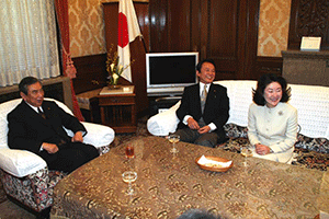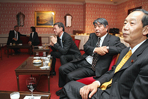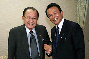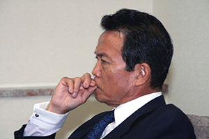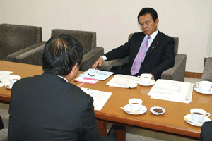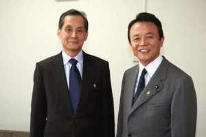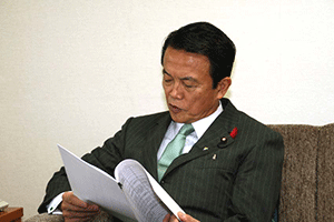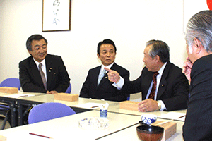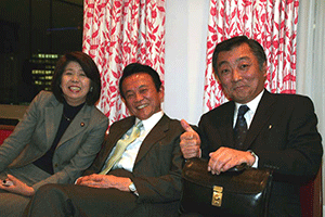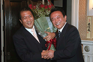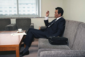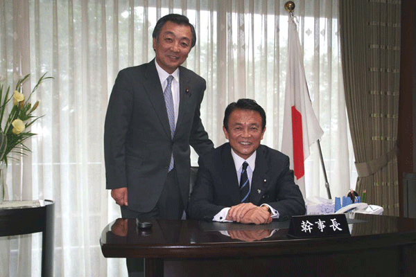 突然私の部屋に麻生太郎先生が現れました。隣の自分の部屋では、別件のお客様が面談中で居る場所がないとのことでした。瞬時でしたが、課題山積の国会に大変心を痛めている様子でした。しかし気力・体力ともに充実で元気一杯の麻生太郎先生でした。