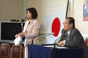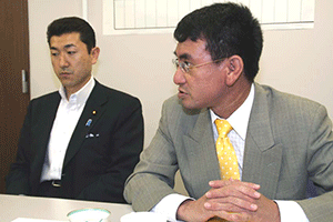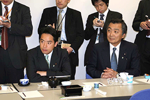 写真左は遠藤宣彦(のぶひこ)衆議院議員(福岡1区・九州ブロック比例当選・1期)、写真右は永岡桂子衆議院議員(茨城7区・北関東比例当選・1期)、以上の2名が新たにメンバーに加わりました。その表情は緊張した様子でした。