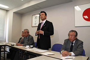 そしてご挨拶の終了後、後援会を代表して松本純後援会の活動状況の報告などがなされました。