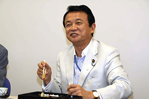 そこからは、いつもの麻生節に、皆さんが咳払い一つない中で耳を傾けました。麻生太郎先生からも参加者の皆さんに日頃からのご支援に感謝を述べていただき恐縮していしまいました。