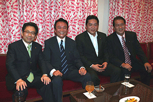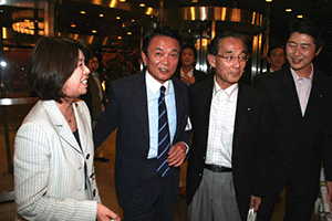 第7回の太郎会がホテルオークラで開催されました。今回も夜遅い時間に開会したにもかかわらず、多くの皆さんが参加されました。この太郎会の前に宏池会(古賀派)のパーティーが開催され麻生大臣も出席され挨拶されたそうですが、あまりにもまじめな挨拶をして、周りからの期待を裏切ってしまったようだ、と麻生大臣はニコニコしていました。