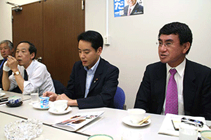 第4回目の太郎会が開催されました。開会30分前に到着し、受け入れ準備をチェック。途中での出入りもありましたが、遅い時間にかかわらず、20名の議員に参加していただき、今夜も麻生太郎、鳩山邦夫両議員が大いに盛り上げてくださいました。閉会は午後10時30分でした。