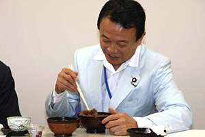 お料理もスムーズに進み、麻生太郎先生が会場に到着した頃には、既に皆さんはデザート近くまで進んでいました。お料理の味はどうだったのでしょうか。私も家内も記念写真撮影でお料理の味見をすることは出来ませんでしたが、皆さんはきっと美味しく召し上がっていただけたに違いないと思います。
