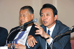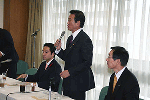 麻生太郎会長から両名が紹介された後、国会の情勢について次のようなコメントがありました。