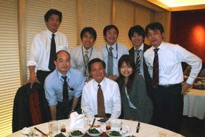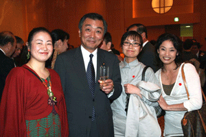 その後、全員での記念写真です。奥様、お嬢様が同席されました。記念写真はプロカメラマンの役割で、そばにいる私に「スナップは一時止めて!」と・・・。フラッシュが邪魔なんでしょう。ノーフラッシュで撮るとピントが甘くなってしまいますが、上記写真のような記念撮影の様子でしたよ。