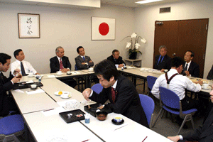 麻生太郎外務大臣はアジア・欧州会合のためドイツ出張で欠席でしたが、為公会を担当するマスコミ各社の記者に皆さんと懇談会が開催されました。記者さん一人ひとりに自己紹介をお願いし、為公会のメンバー議員との交流をさらに深めていただくことが出来たと思います。そういえば、17時30分ころ麻生会長から「只今、ハンブルグにてASEMの外相会議開催中。」とのメールが私に届きましたが、松岡さんの自殺の件については大変驚かれていました。