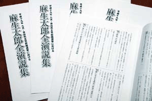 その後、為公会の第1回パーティーを迎えるにあたり、メンバー紹介の小冊子が最終校正に入り確認が求められました。その中にメンバーの血液型が書き込まれているのを見て、麻生会長は「日本の戦後歴代総理の血液型は、佐藤栄作A型、田中角栄・竹下登B型、宮澤喜一AB型の4人を除いて、あとは全員O型だ」と話題を提供されました。その間の麻生会長の表情は大変豊かで、いろいろな顔をゲットしました。